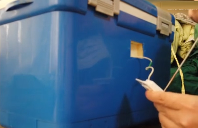 醫(yī)院輸血、送血,用血液中轉(zhuǎn)箱來(lái)周轉(zhuǎn),它是一個(gè)帶保溫功能的箱子。箱子里面內(nèi)膽可能有一些泡沫之類的保溫材料。箱子的前面有一塊液晶顯示屏,用來(lái)顯示箱子溫度數(shù)據(jù)。不顯示的話就是電池沒了需要更換電池。箱子的扣子打開后,正常的話是放冰袋之類的東西,它的目的是可以讓里面的血液保持在一個(gè)恒定的溫度。因?yàn)槲覀冋5难旱臏囟刃枰娣旁诎藬z氏度左右。拿走上面的格子槽,可以看到箱體里面的大空間來(lái)存放血液制品。根據(jù)血液、血漿、血小板不同材料要求來(lái)進(jìn)行溫度調(diào)節(jié)。溫度不會(huì)受外界影響變化。