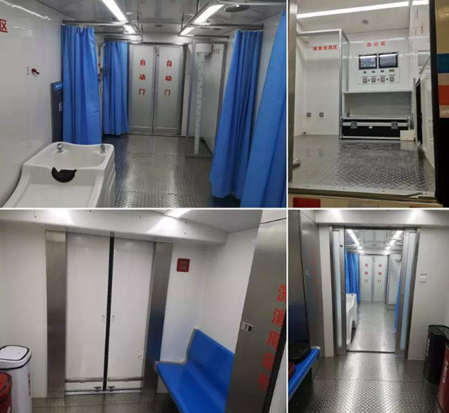 核化污染洗消車(chē)就是一座移動(dòng)的核救治醫(yī)院。高效移動(dòng)趕赴現(xiàn)場(chǎng),去傷病員表面的放射性物質(zhì)污染。核化污染洗消車(chē)分為三個(gè)區(qū)域,污染區(qū),洗消區(qū),檢測(cè)區(qū)。污染檢測(cè)區(qū)的儀器可以檢測(cè)身體核污染的量。評(píng)估身體被污染水平。污染較輕的應(yīng)急人員手持表面污染檢測(cè)儀,精準(zhǔn)定位傷病員的污染部位和面積,重點(diǎn)清洗。污染比較重的就需要救護(hù)人員幫忙脫掉衣物,洗消區(qū)進(jìn)行精細(xì)清洗。洗消好后再到檢測(cè)區(qū)檢測(cè)洗消后身體輻射量能不能達(dá)標(biāo)。